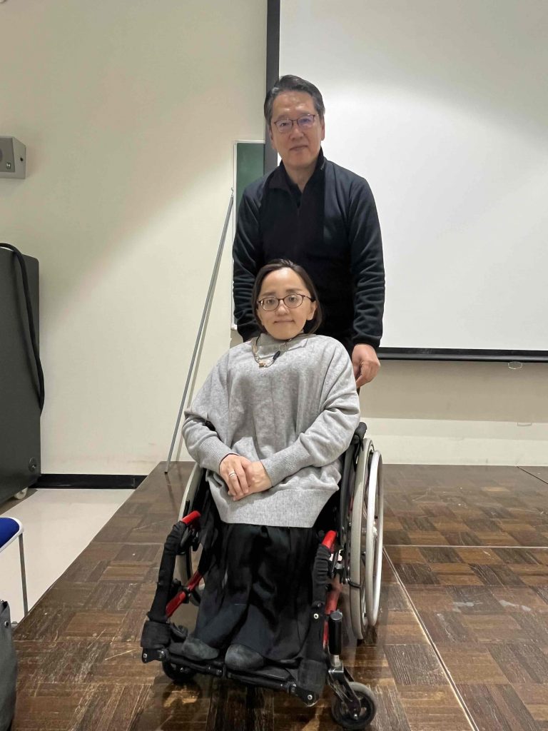 1限目は、非常勤講師の 藤田晃子先生 よりご自身の車いすにおける生活体験や社会参加、そして「支援される立場」から見たバリアフリーの現状についてさまざまなお話しいただきました。学生たちは多くの気づきを得ました。